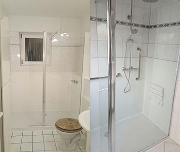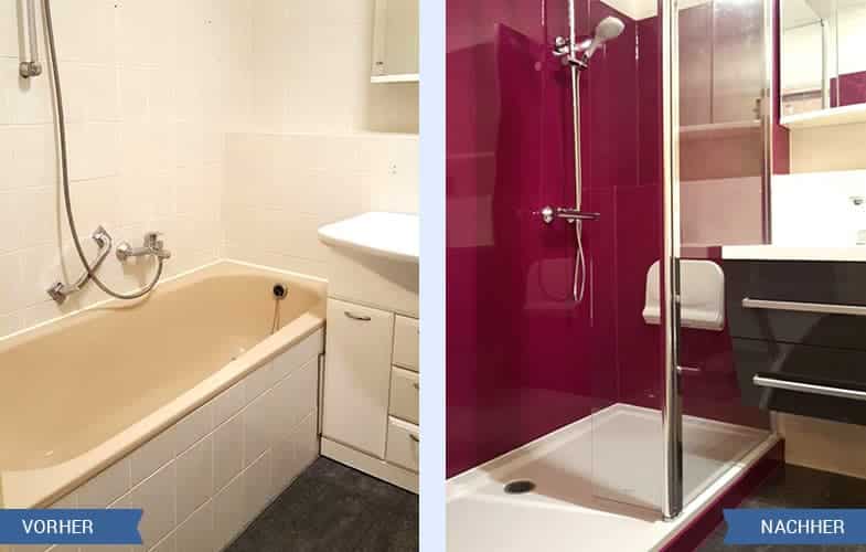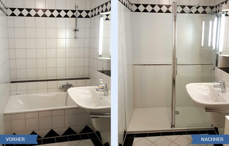 In unserer Vorher-Nachher-Galerie präsentieren wir Ihnen eine breite Auswahl an Projekten, bei denen eine Badewanne in eine Dusche umgebaut wurde. Hier sehen Sie, wie sich das Badezimmer durch diesen Umbau verändert hat und wie viel Platz gewonnen wurde. Wir sind uns sicher, dass auch Sie von diesen beeindruckenden Veränderungen inspiriert werden und sich dazu entscheiden, Ihre Badewanne in eine moderne Dusche umzubauen. Wir sind stolz darauf, dass wir unseren Kunden einzigartige und qualitativ hochwertige Lösungen bieten können. Unsere Umbau Bilder geben Ihnen einen Eindruck von der hohen Qualität unserer Arbeit und zeigen, wie wir es schaffen, selbst aus kleinen Badezimmern das Beste herauszuholen.